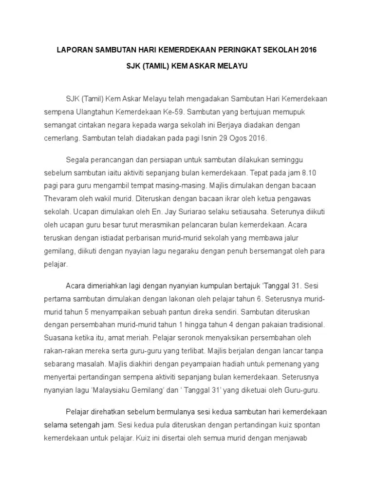 Pada 15 ogos 2010 yang lalu,sekolah saa telah menganjurkan bulan kemerdekaan.program yang berlangsung selama sebulan ini bertujuan menyemai . Contoh karangan laporan sambutan kemerdekaan peringkat sekolah contoh karangan peranan pihak sekolah untuk mengadakan sambutan bulan kemerdekaan di sekolah. Pada pendapat saya, program sambutan bulan kemerdekaan telah dapat memupuk semangat patriotisme di kalangan pelajar. Penulisan online worksheet for tahap 2 tahun 4, 5, 6.